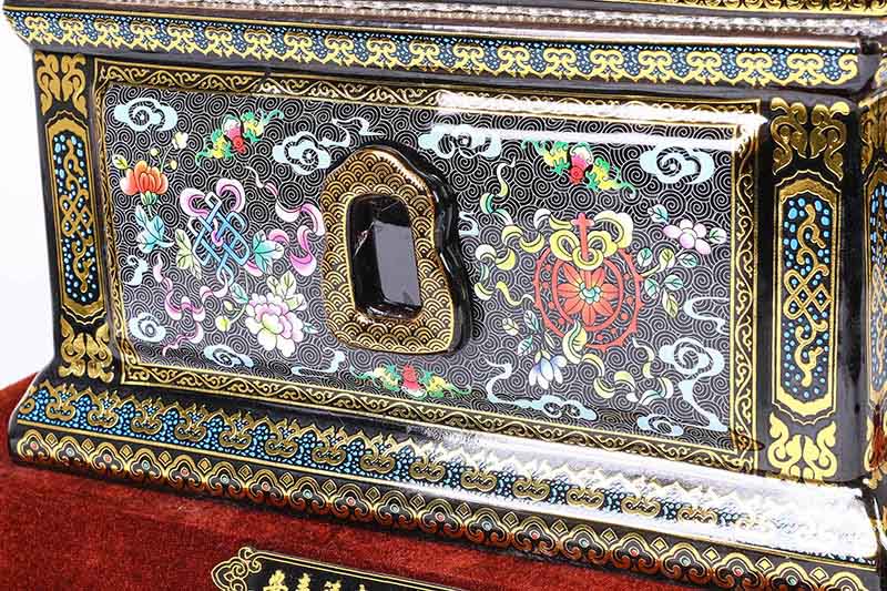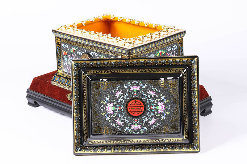 這款【故宮八寶】產(chǎn)品,采用的工藝非常繁瑣,巧妙的運用爬花鋪底,然后加上粉彩,四面采用的八寶圖、即吉祥結(jié)、妙蓮、寶傘、右旋海螺、金輪、勝利幢、寶瓶和金魚。在這款產(chǎn)品上展現(xiàn)的盡致,代表著我們“安泰福壽”人對陶瓷藝術(shù)的無限美好的追求,八寶圖寓意后世吉祥平安,是中國的傳統(tǒng)文化!尺寸:300x230x210mm